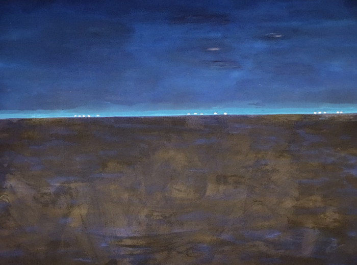 For example, on a large blank canvas, there are painted lines or dots, which seem to emerge out of the canvas and make the surrounding space resonate. Otherwise, they seem to contend each other for a prize.