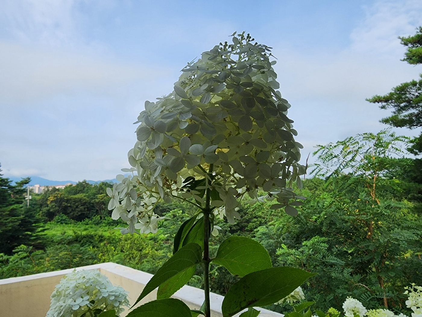 하늘의 솜 같은 뭉게구름과 예쁜 꽃을 보면서 시원함을 찾다보니 싫증이 났다.